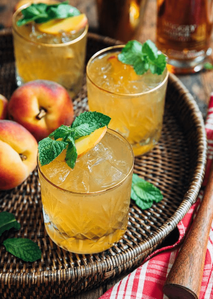 Fresh peaches muddled with mint, lemon, and a splash of bourbon = a cocktail that’s as gorgeous as it is refreshing.